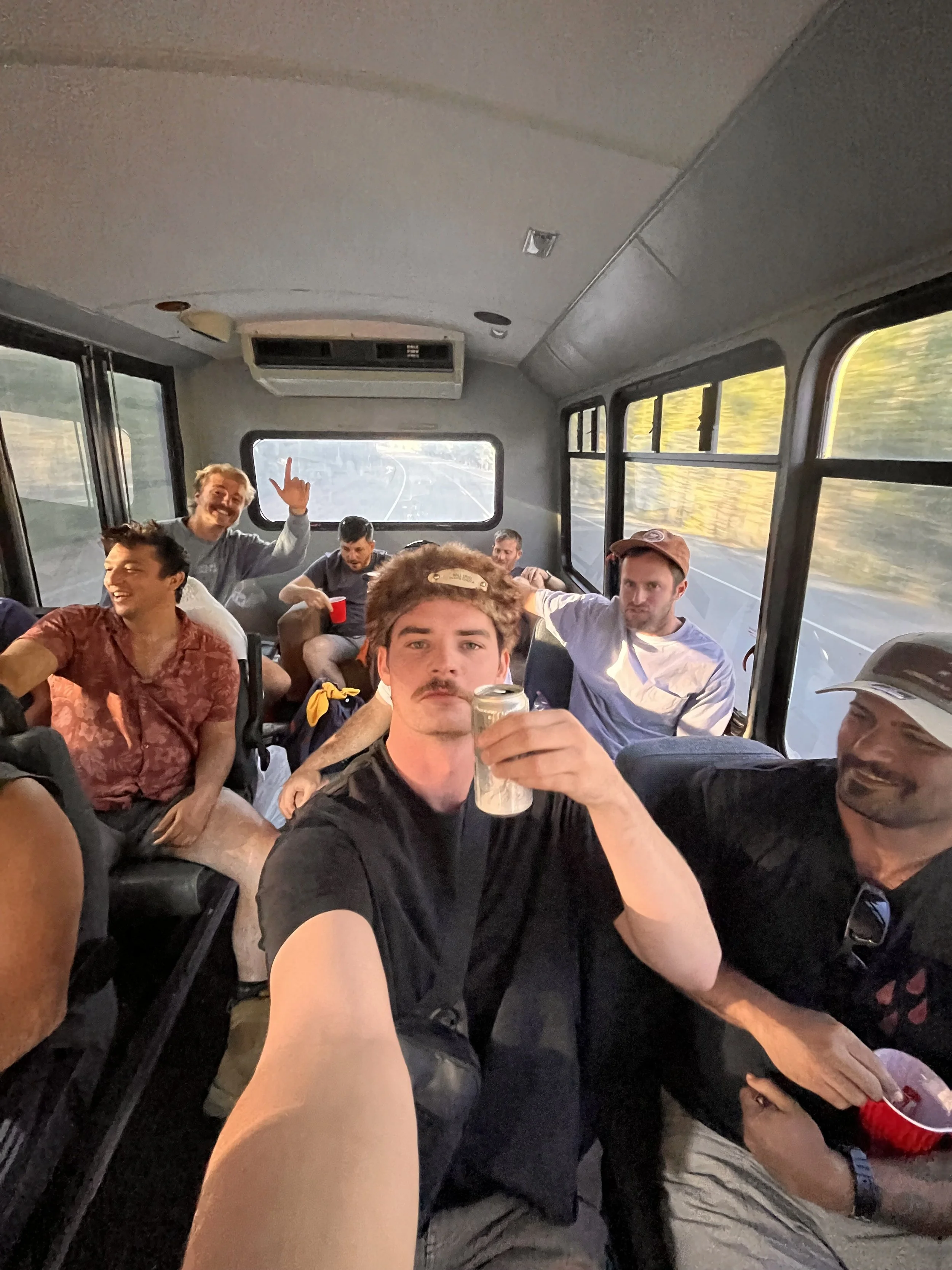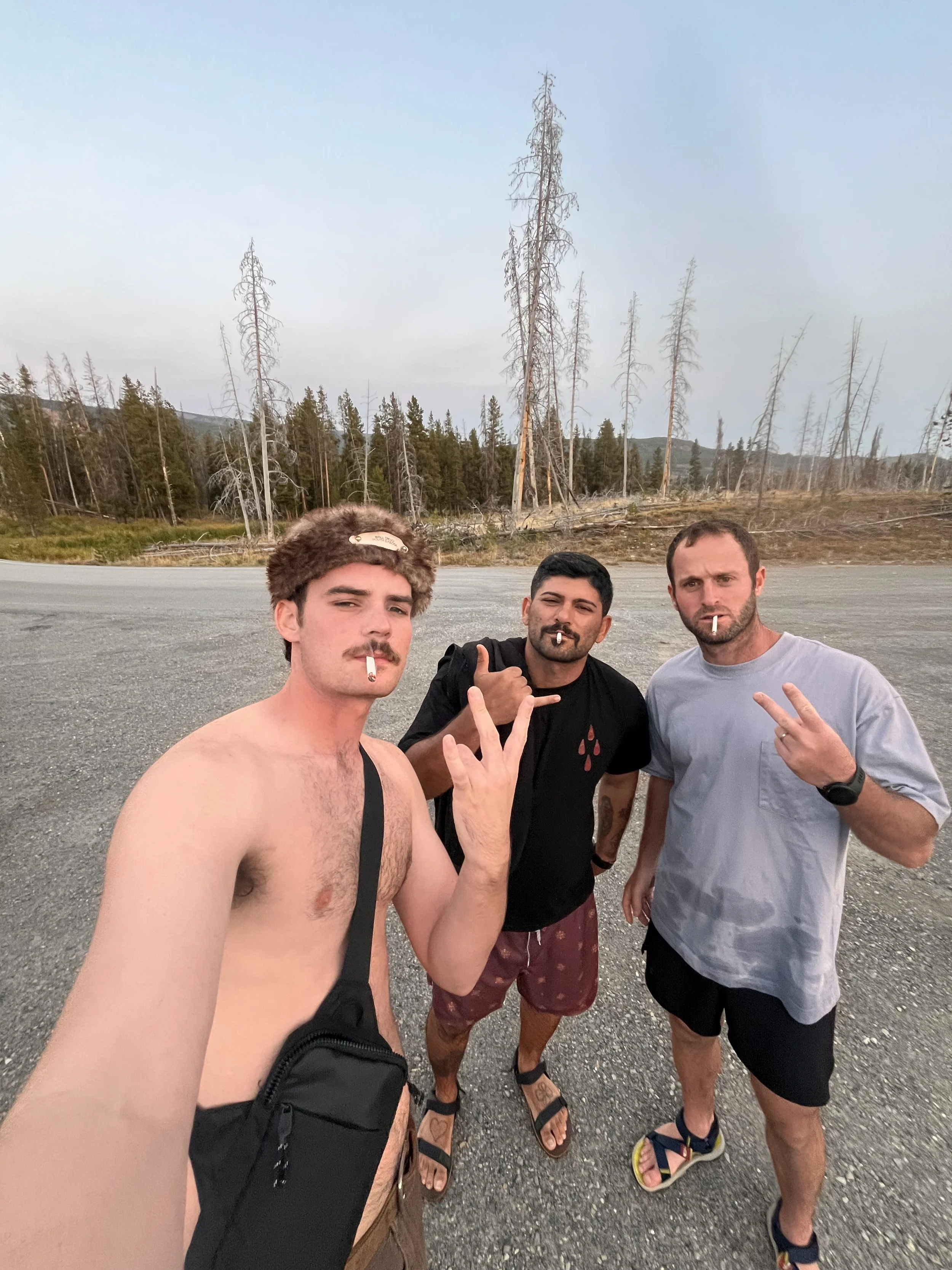 One of those miracles began a few days earlier at Wall Drug, a roadside attraction that is equal parts capitalist hallucination and prairie fever dream. Imagine a carnival that never quite ended, fossilized in neon signs and cheap souvenirs, propped up by bottomless coffee and animatronic cowboys. Wall Drug is less a store than a hallucination in broad daylight. Amid the noise, I spotted a man wearing a West Virginia Mountaineers cap—my alma mater. I couldn’t help myself; I had to say something. What followed was a long conversation about the state, its hills, its people. We shook hands and parted ways, two strangers momentarily bound by memory. Flash forward to Yellowstone. My travel partner and I stood at Artist’s Point, staring out over the falls and the endless forest.And there he was again. Same cap. Same man. Same smile. I’m not usually one for invisible strings or divine intention, but I couldn’t shake the sense that this reunion had been arranged somehow. We spoke again. His wife prayed for us, pulled us into a hug. They were the kind of people who remind you that the world still tilts toward good. After nearly seven hours in the park, we decided it was time to head south toward Jackson, Wyoming. Laura, generous as ever, offered to drive us the whole way. We didn’t let her. She had already given us more than enough. Some gifts you accept, and some you protect by leaving them whole. Laura dropped us at the south entrance of the park, where the road met the interstate that would eventually lead to Jackson. We said our farewells and started waiting, holding signs that read “JACKSON“ The sun sank lower and lower. I grew nervous. All we had was a bag of clothes, a Canon ES55 tape camera, and a small bottle of bear spray. I didn’t want to be stuck in Yellowstone overnight. We waited and waited. At one point, a man offered us a ride, claiming he could get us to Jackson in three days. We had to turn him down—we needed to stay on schedule. He offered us Camel cigarettes instead, which we accepted, and we waited some more. Waiting is thrilling in a way, though daunting as hell. Here we were, entirely reliant on strangers to make sure we didn’t get trapped in the park before the sun set. After about two and a half hours, a bus pulled in. One of those buses that probably shuttles retirees between grocery stores and community centers. At first, I thought maybe the passengers were stopping to use the string of porta-potties at the pull-off where we had been parked. But no one got out except the driver. “Where are you off to?” the man, no older than thirty, asked. “Jackson, WY”, we replied. “We’re headed there too, who are here on vacation.” he said.“I’ve got a bus full of Israelis”I wasn’t fazed by the fact that the bus was full of Israeli tourists. I was just relieved. We had a ride. We quickly , with no questions asked, grabbed our bags and were greeted by chants when we got on the bus.Now before I go any deeper into this story I think its important to note that I am in no means a geo-political expert, I have a strong idea what is happening between Israel and Palestine as I write this but I want it to be clear that I am in no way claiming any political ideology with anything I am about to write, this is simply a story and something that happened to me. It was thrilling. In the first five seconds of boarding the bus, we felt welcomed. A cold Coors Light was handed to us, and looking back, it might have been the best beer I’ve ever had. Hours of waiting in the hot sun will do that to you; sometimes water just isn’t enough. We began to explain our journey to the men on the bus. They were genuinely interested, though the conversation was fairly run-of-the-mill at first. I turned to one of the few who spoke perfect English and asked, “What brings you guys here?” “We’re on vacation here in America.” he said. “We’re in the IDF and decided to come”