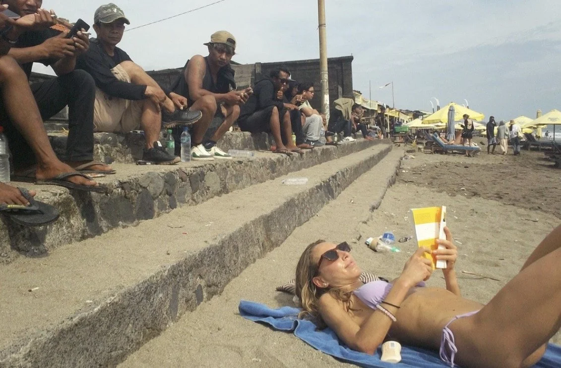 In a once rural fishing village, lies a bustling town called Canggu. Amidst the thick black, smog-ridden streets and tucked into any spare vacant plot, or unused clearing, here you’ll notice rows of elegant, arched entry way, white-marbled, luxury cafes work spaces and pilates studios alike. You’ll see hanging wooden signs outside of these structures, reading some ridiculous name like Villa Almond. Behind it, more layers of poorly advertised, seemingly empty wellness compounds. Even certain streets lined with giant low-budget billboard ads featuring next-to-naked women in lingerie or cheesy mis-spelt English slogans. This town is one of most notable impact by tourism on the entire island.