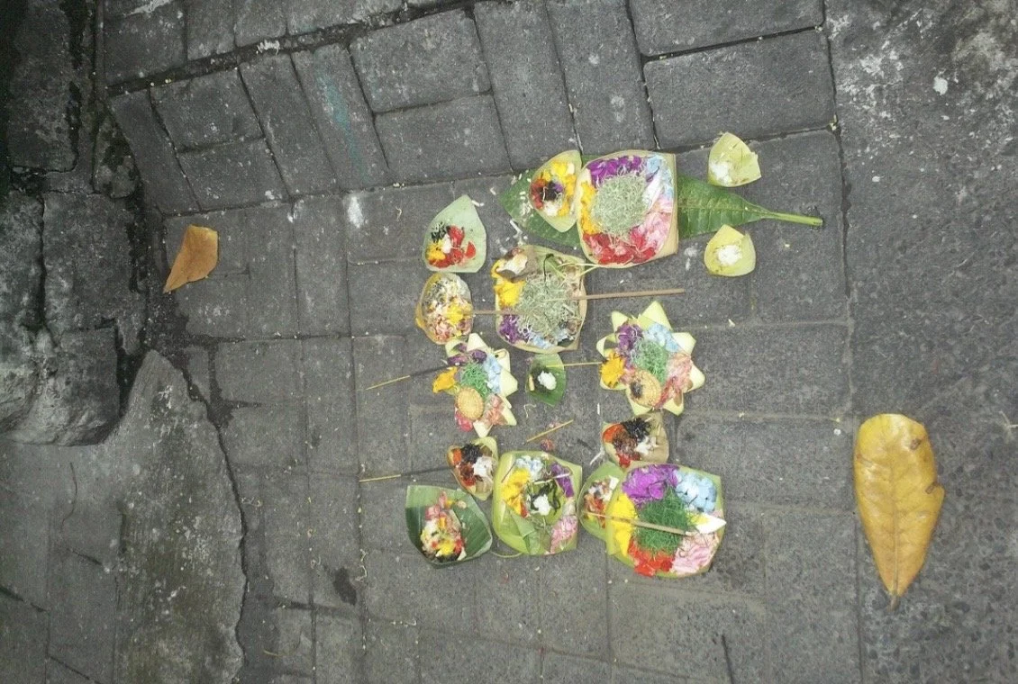 You’ll be reminded of Bali’s strong Hindu roots everywhere you go. There is a tradition called Canang Sari where each day, these small palm leaf trays containing food, money, flowers, cigarettes, or anything regarded highly, are placed outside on either the ground or a higher surface. Where the higher offerings represent the higher benevolent forces and the ground level offerings appease the lower malevolent forces. A daily sacrifice meant to maintain cosmic balance and harmony, representing gratitude and devotion. To thank the gods for life and peace.